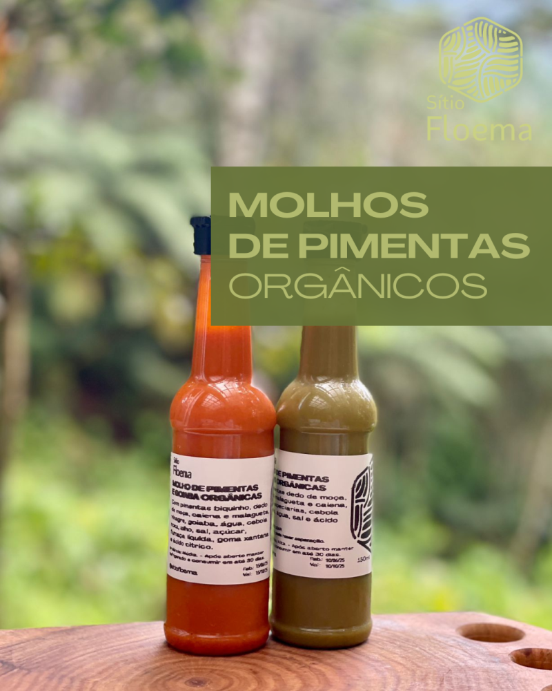 Nossos molhos de pimenta são feitos com pimentas e temperos cultivados por nós aqui no sítio, em sistemas de plantio regenerativo e manejo agroecológico. Cada frasco carrega a força do solo, o cuidado das nossas mãos e os sabores intensos das nossas hortas.